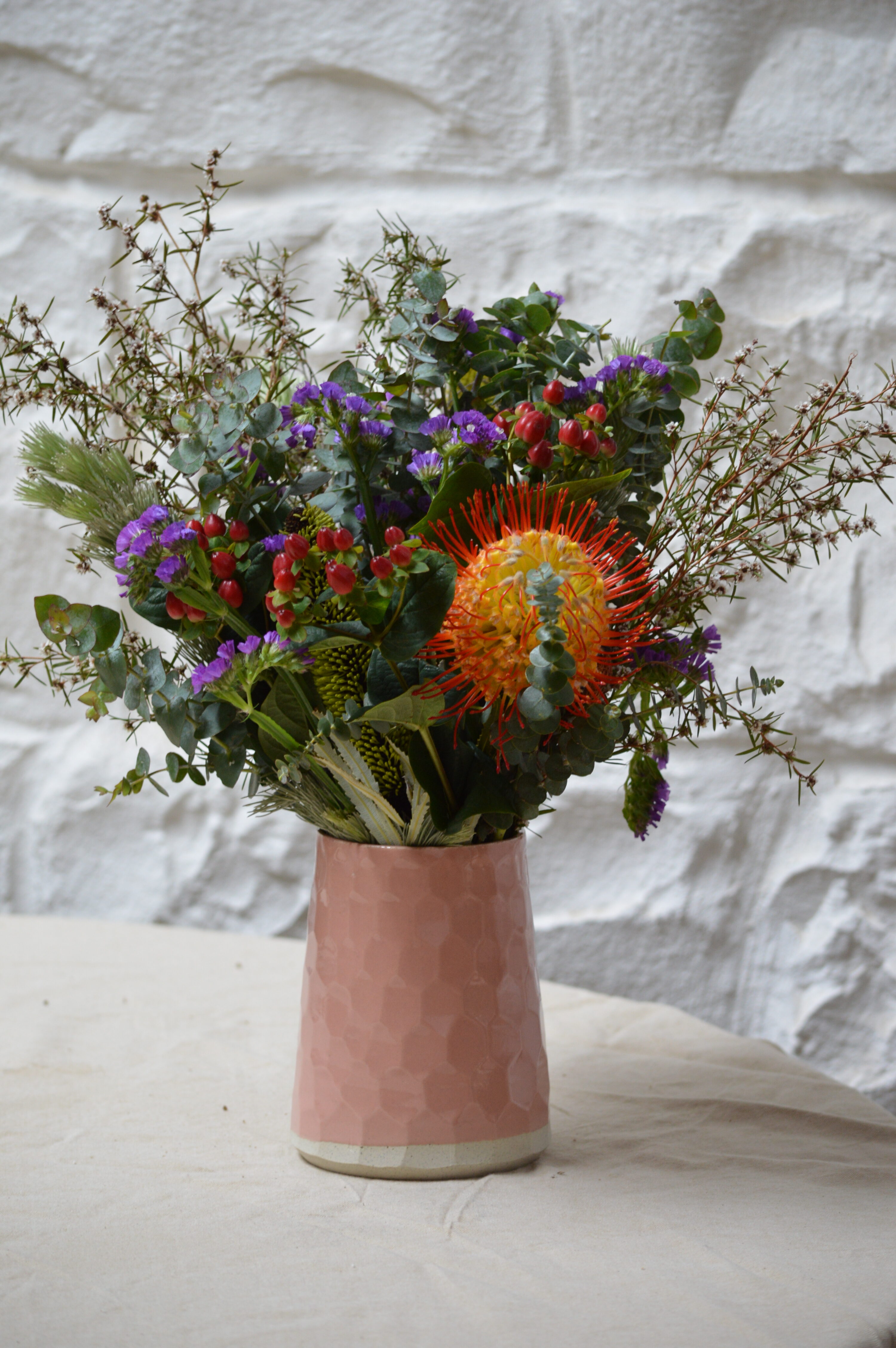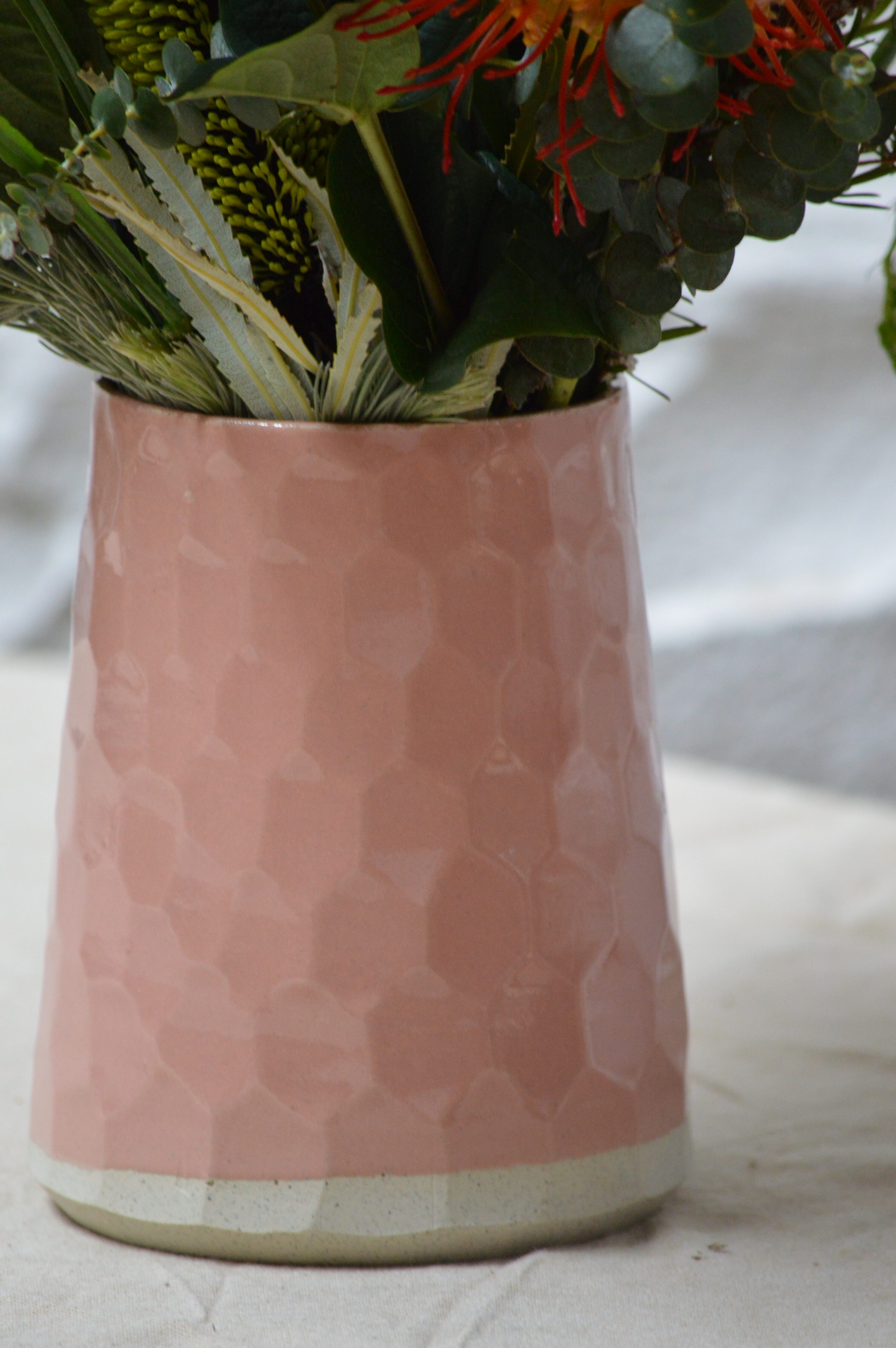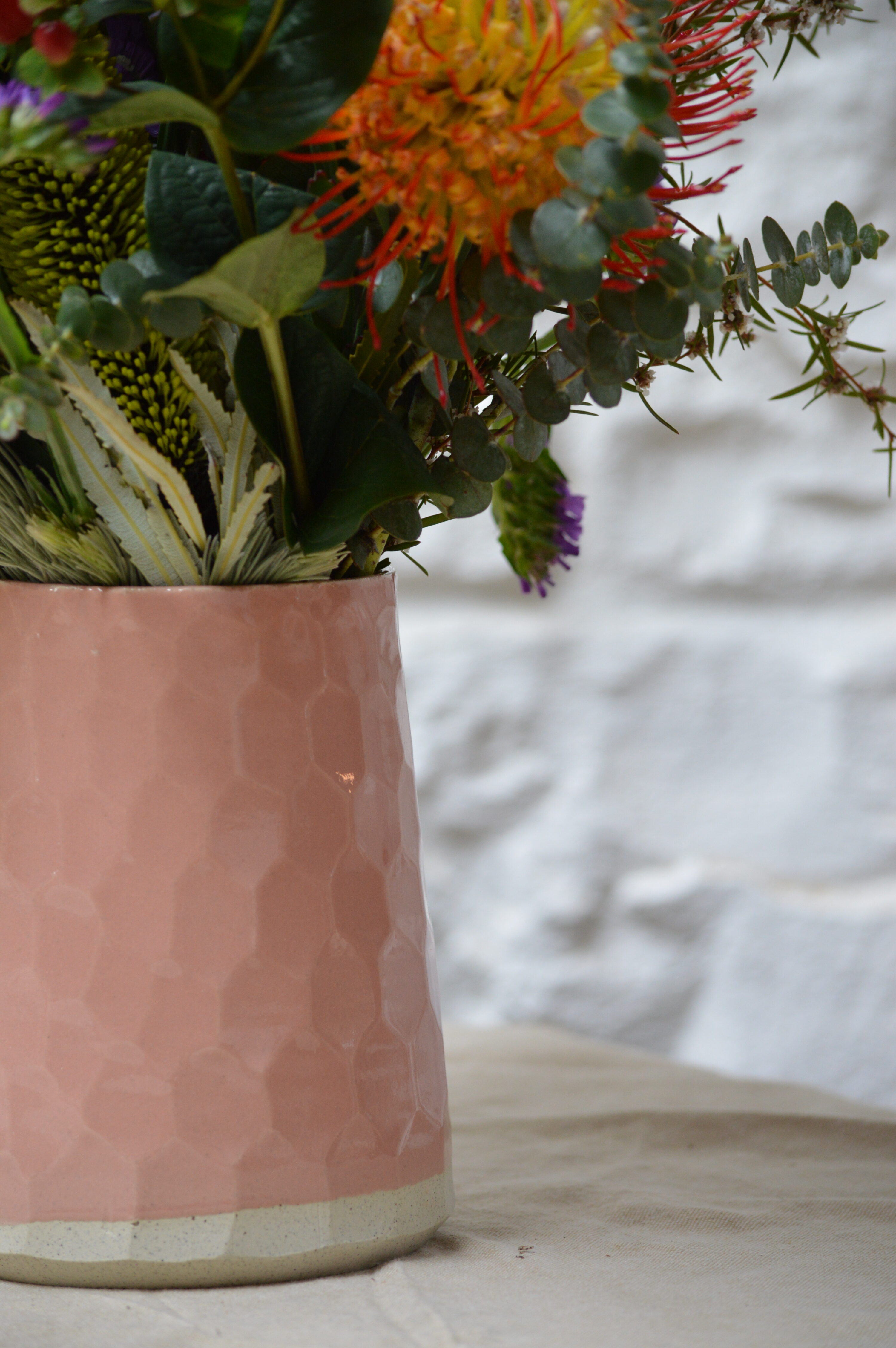 This vase will really make a statement. Any flowers can be used in it, or simply as a decorative statement piece at the centre of your table or styled on shelving. The hand-carved surface is inspired by the Giants Causeway in Ireland giving it an intriguing texture that will change as it is personally hand-carved by Elizabeth – making each one unique and special.