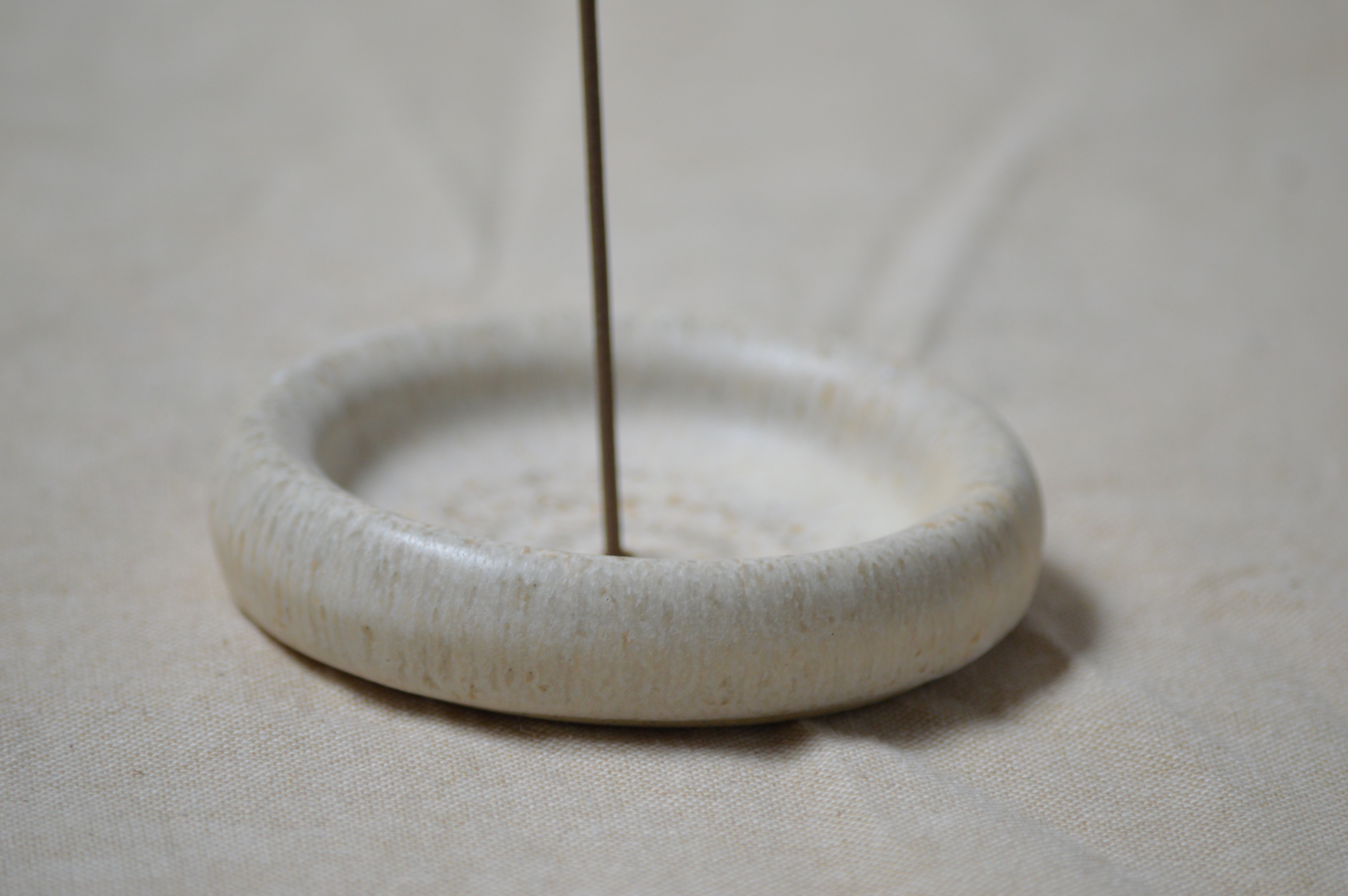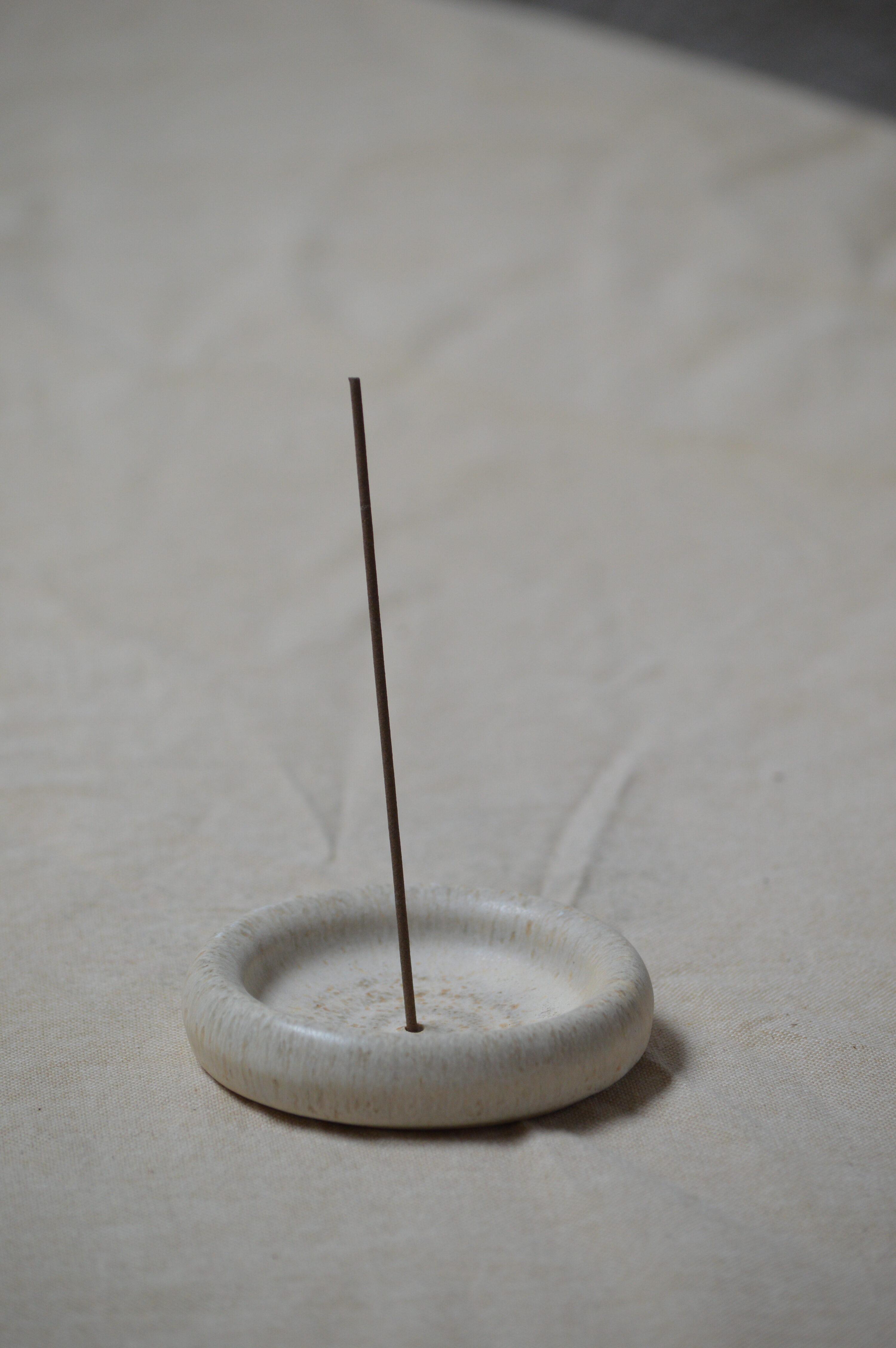 A wheel-thrown stoneware “donut” incense burner, featuring a centred holder for your favourite incense sticks. Each piece is shaped by hand, giving it subtle variations in form and surface that make it uniquely yours. The rounded donut design catches ash neatly, keeping your space clean while adding a sculptural, contemporary touch to your home ritual.