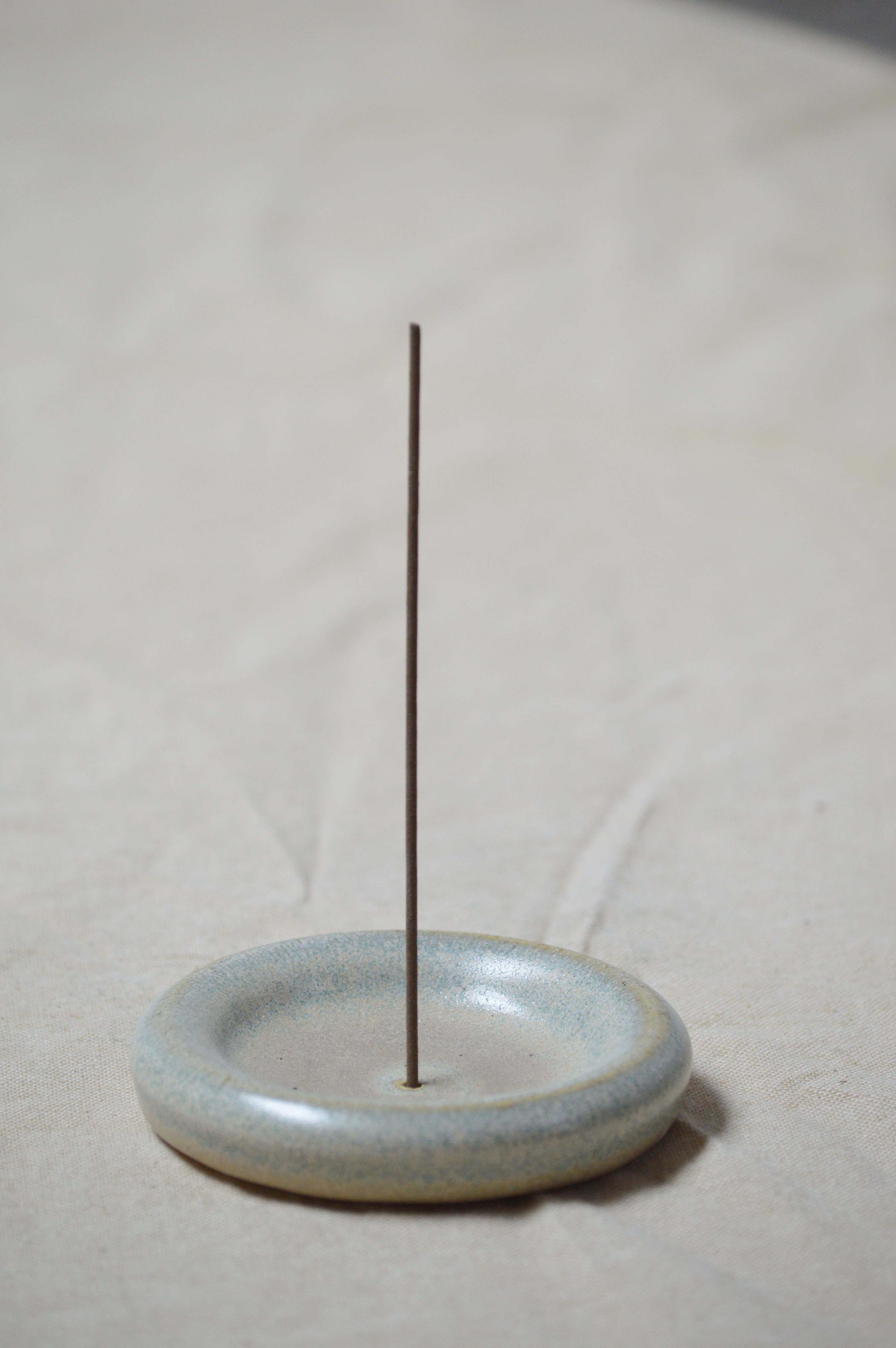 A wheel-thrown stoneware “donut” incense burner, featuring a centred holder for your favourite incense sticks. Each piece is shaped by hand, giving it subtle variations in form and surface that make it uniquely yours. The rounded donut design catches ash neatly, keeping your space clean while adding a sculptural, contemporary touch to your home ritual.