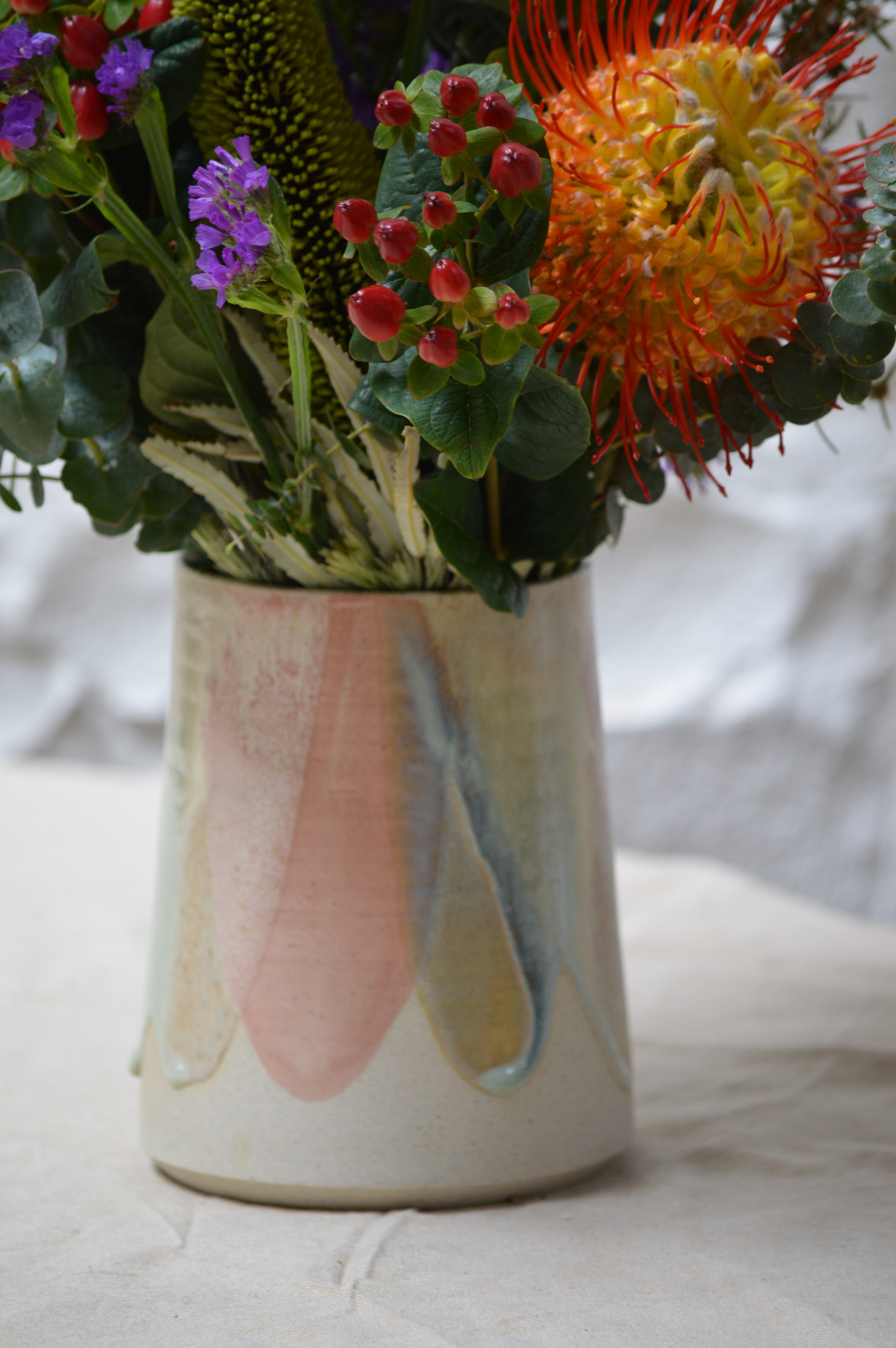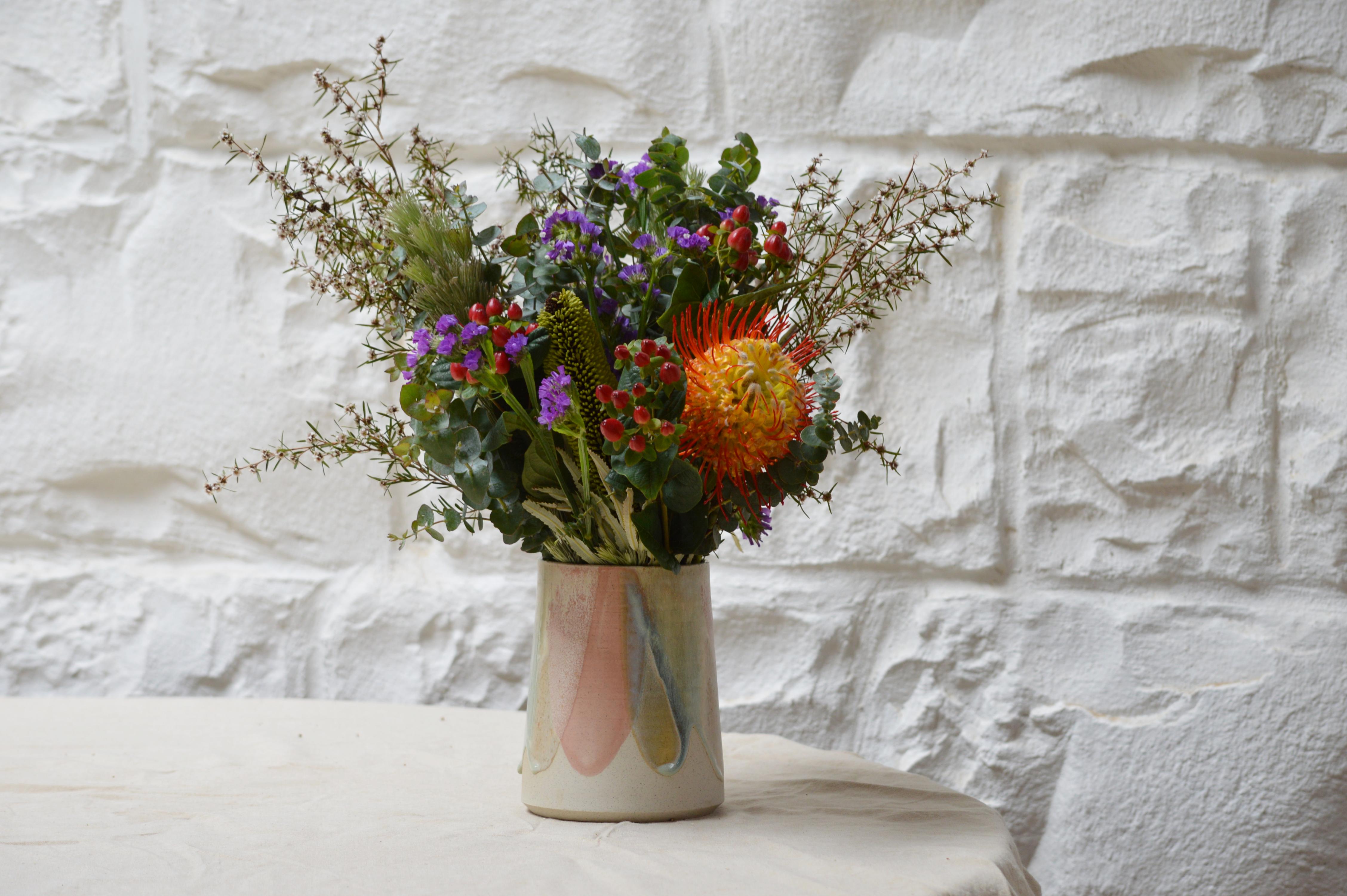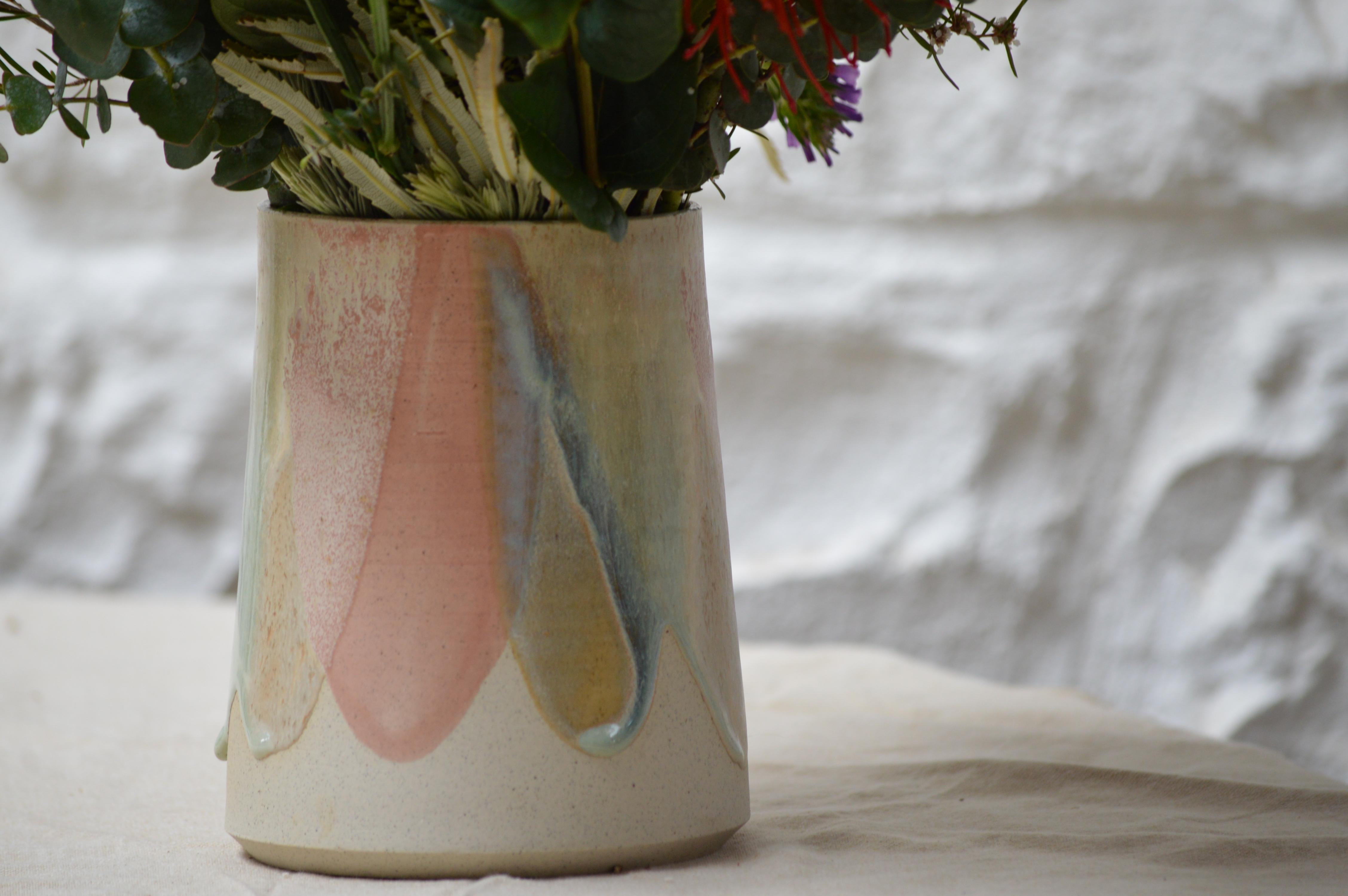 This vase makes a simple yet effective decorative statement piece at the centre of your table or for bringing additional colour to your room. There are so many uses for these gorgeous vases beside flowers, they make the perfect decorative statement piece at the centre of your table, simply as decorations or gift-giving. Each Unique with a glaze layering technique which means no two will ever be the same!
