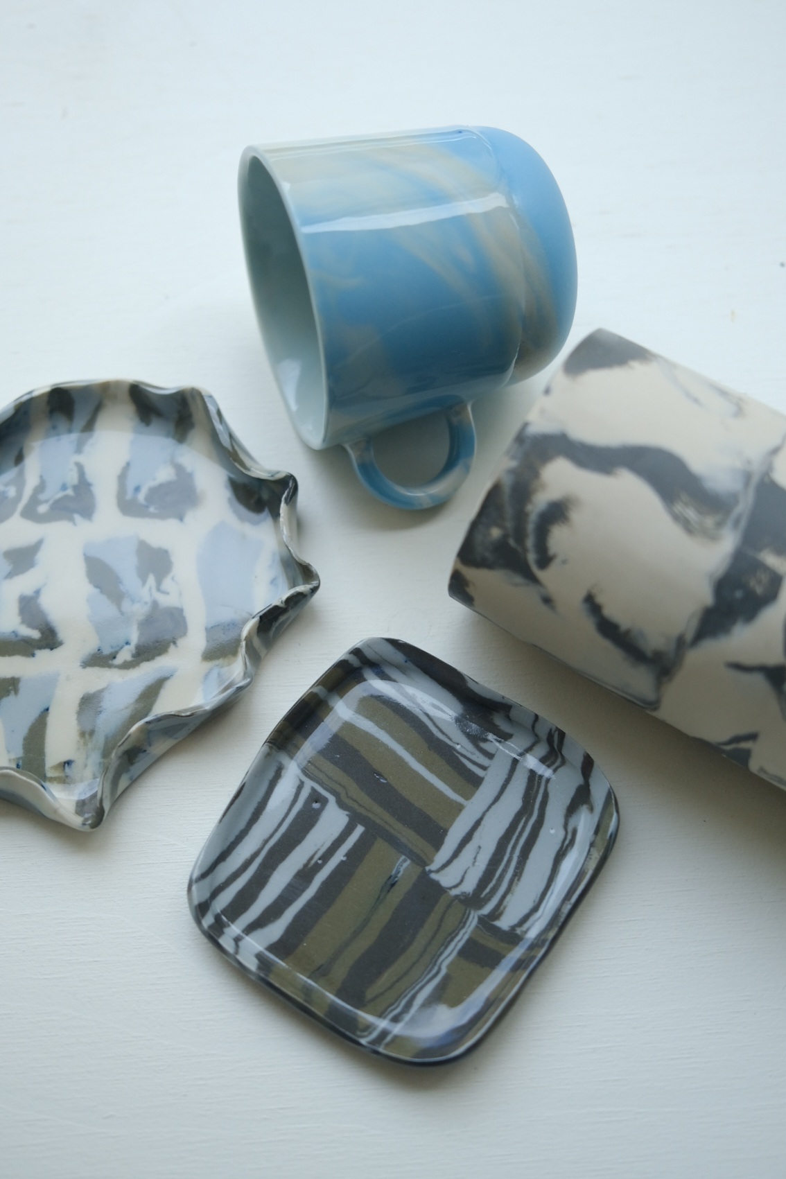 Handbuild with layered patterns inspired by nerikomi, a traditional Japanese technique