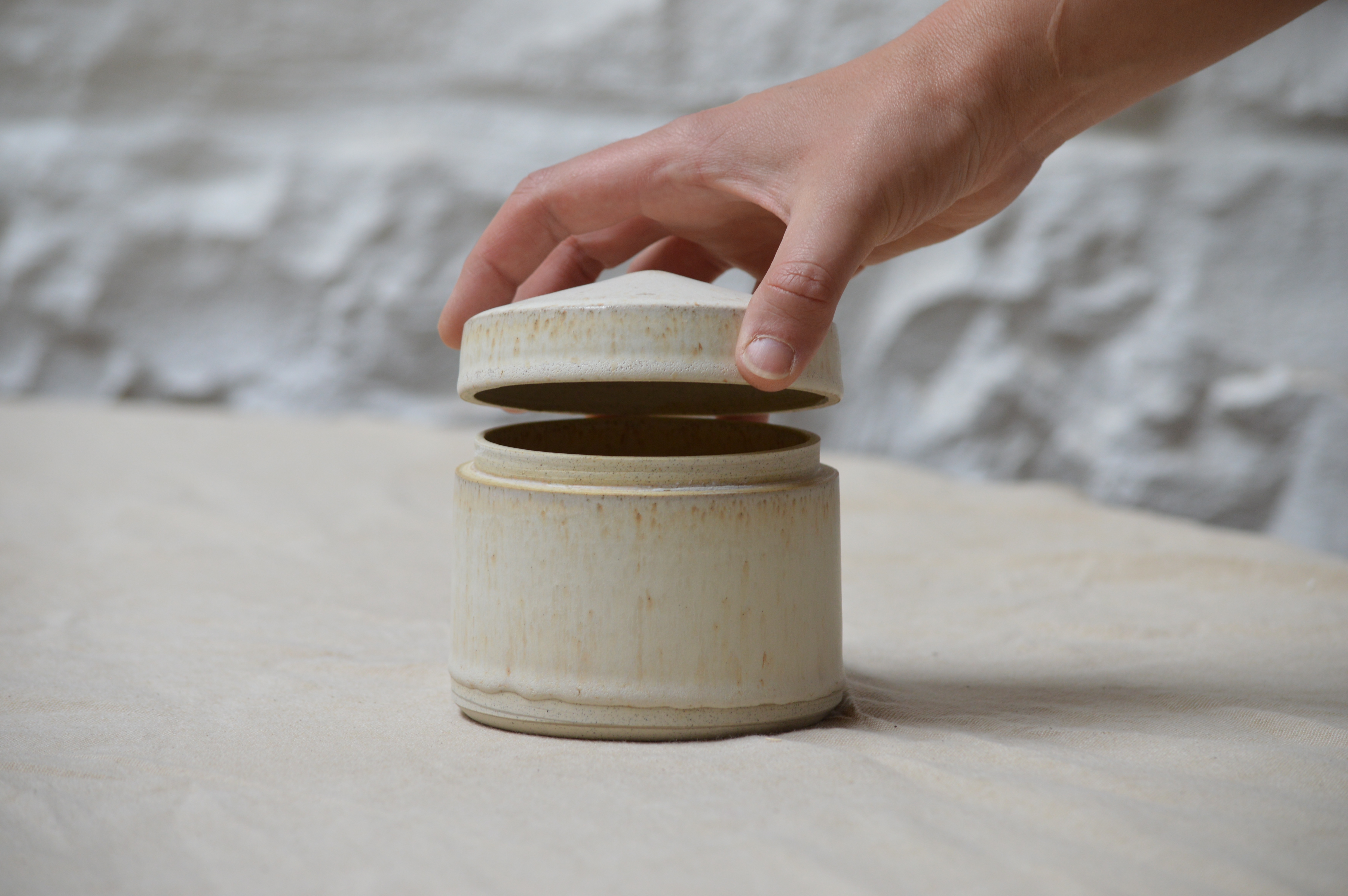These wheel thrown lidded jars add a gentle touch of elegance to any space. Use them for treasured trinkets, sweet little treats or everyday kitchen staples like sugar and salt. Each piece is handcrafted and one of a kind.