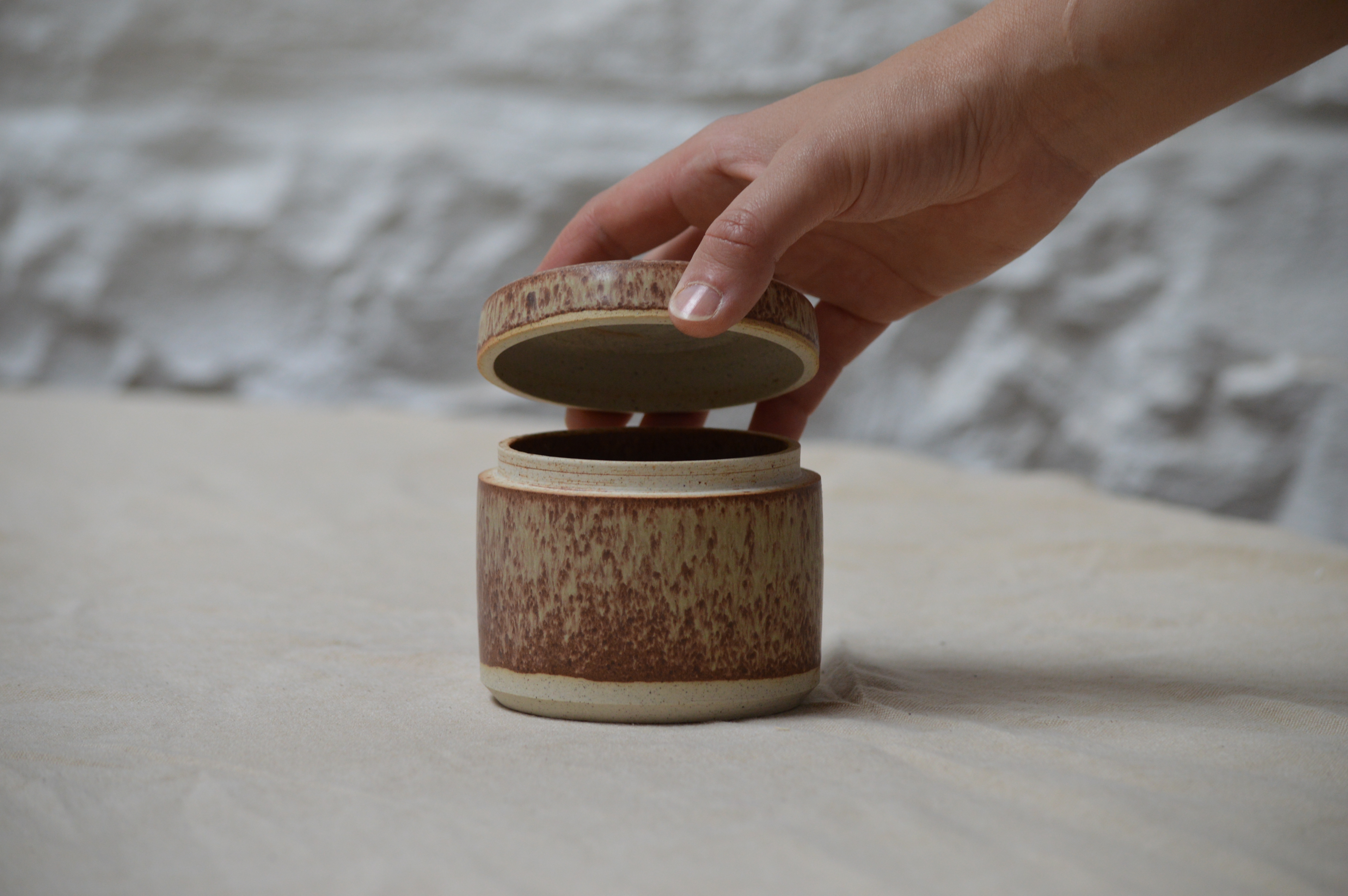These wheel thrown lidded jars add a gentle touch of elegance to any space. Use them for treasured trinkets, sweet little treats or everyday kitchen staples like sugar and salt. Each piece is handcrafted and one of a kind.