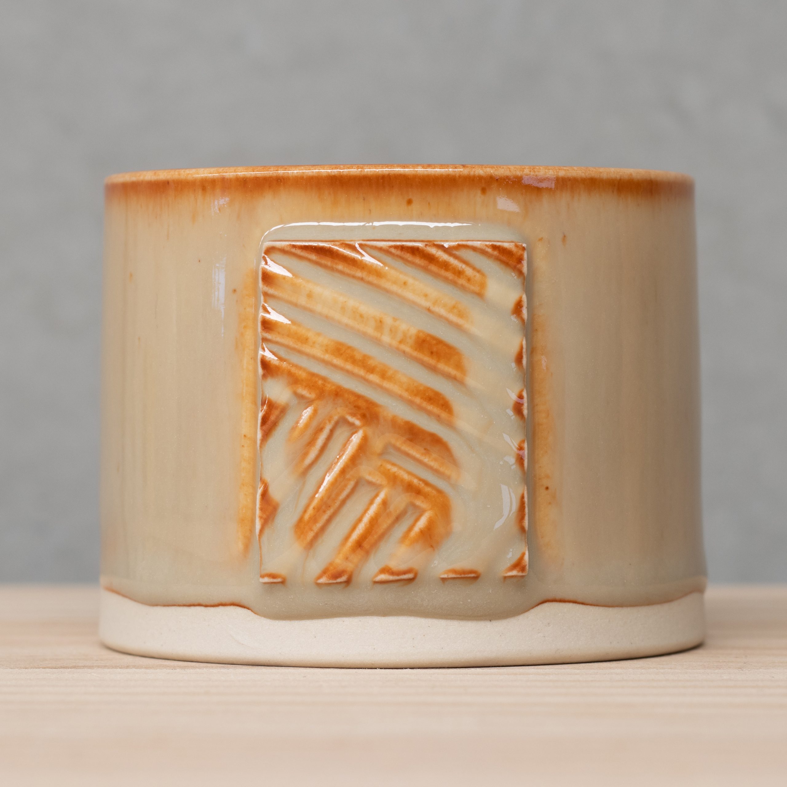 Sunset stoneware is a brilliantly varied glaze with slight speckles on the surface. A thinner application will give an orange colour whereas a thicker application will result in a yellow colour.